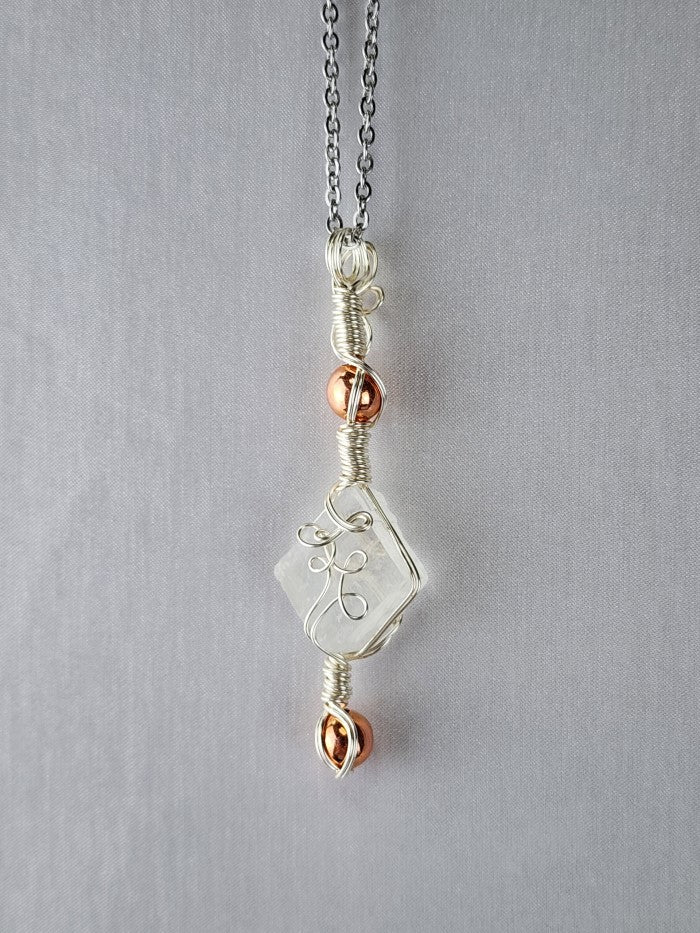 Icelandic Spar with Copper bead Crystal Custom Pendant #E11