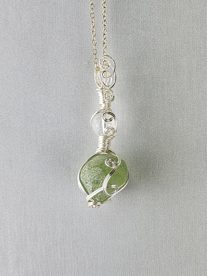 Prehnite Ball with Quartz Bead Crystal Custom Pendant #E16