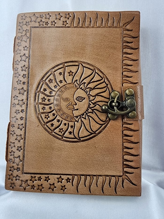 This beautiful Journal has the inlay of the Sun and Moon (Celestial)