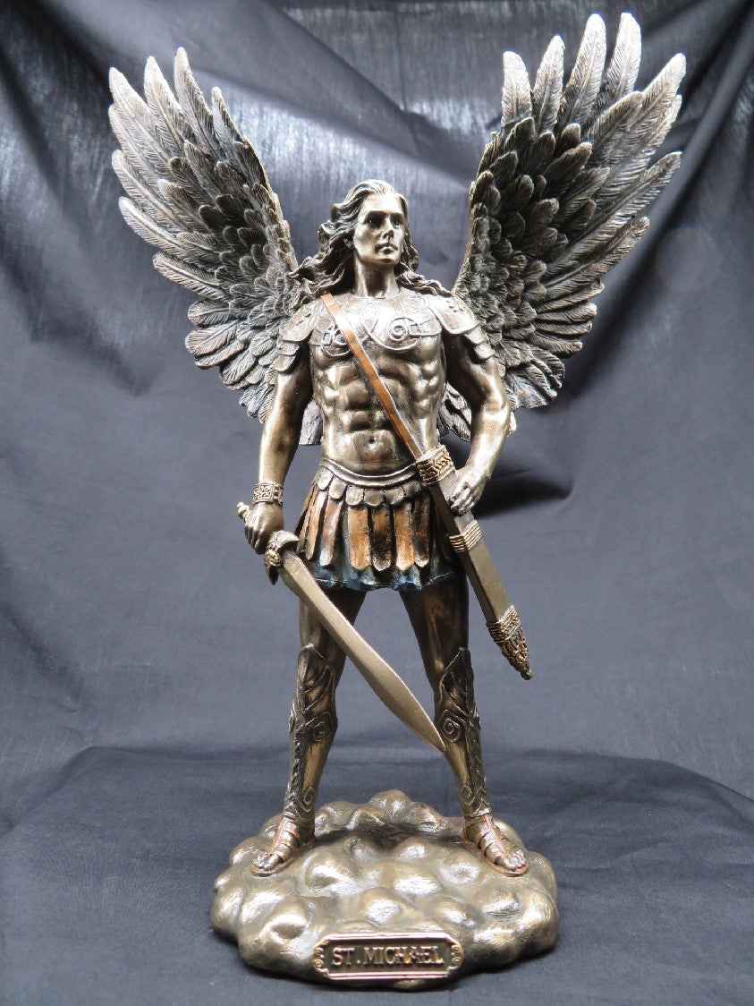 This Powerful statue of Saint Michael with Sword and Scabbard standing strong to Protect us.
